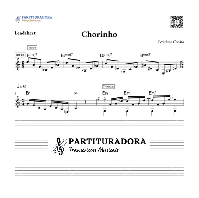 Apresentamos a partitura da música “Chorinho”, o mais novo lançamento do músico capixaba Cecitônio Coelho. Esta transcrição foi elaborada pelo Partituradora.com e está disponível gratuitamente em nossa loja virtual, permitindo que músicos possam conhecer e interpretar essa obra que comemora o dia do choro.